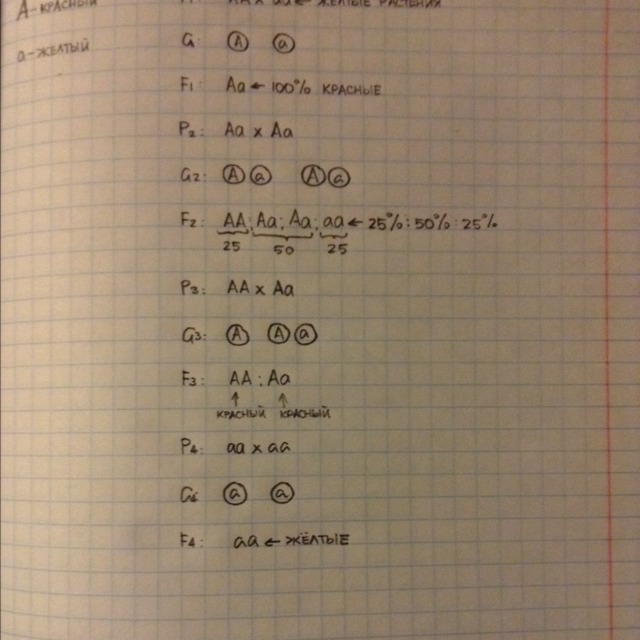 Первая строка - АА х аа - ЖЁЛТЫЕ РАСТЕНИЯ