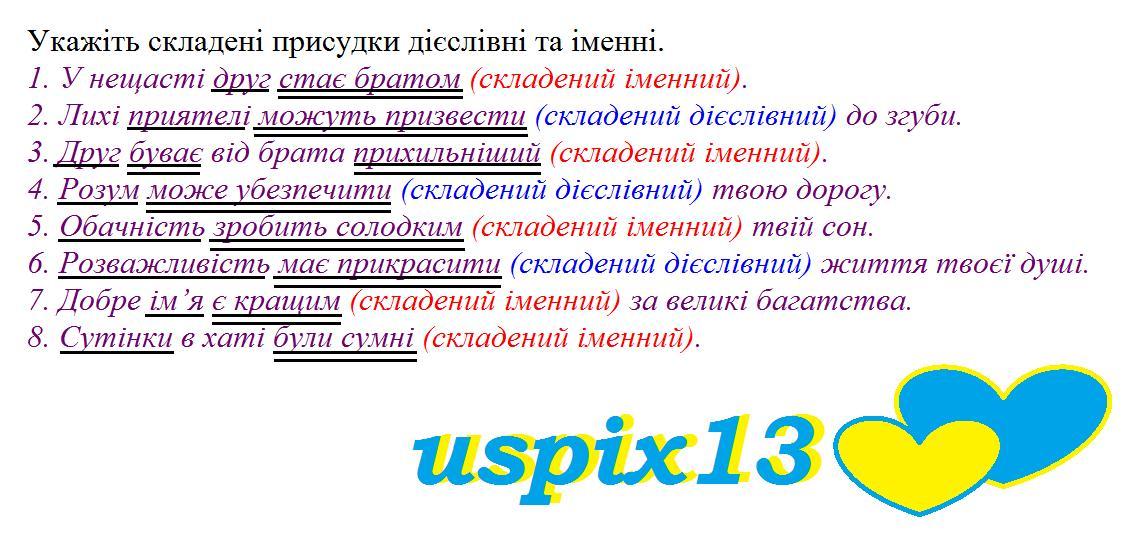 пiдкреслiть у кожному пiдмет i присудок. Укажiть складенi присудки дiєслiвнi та iменнi.