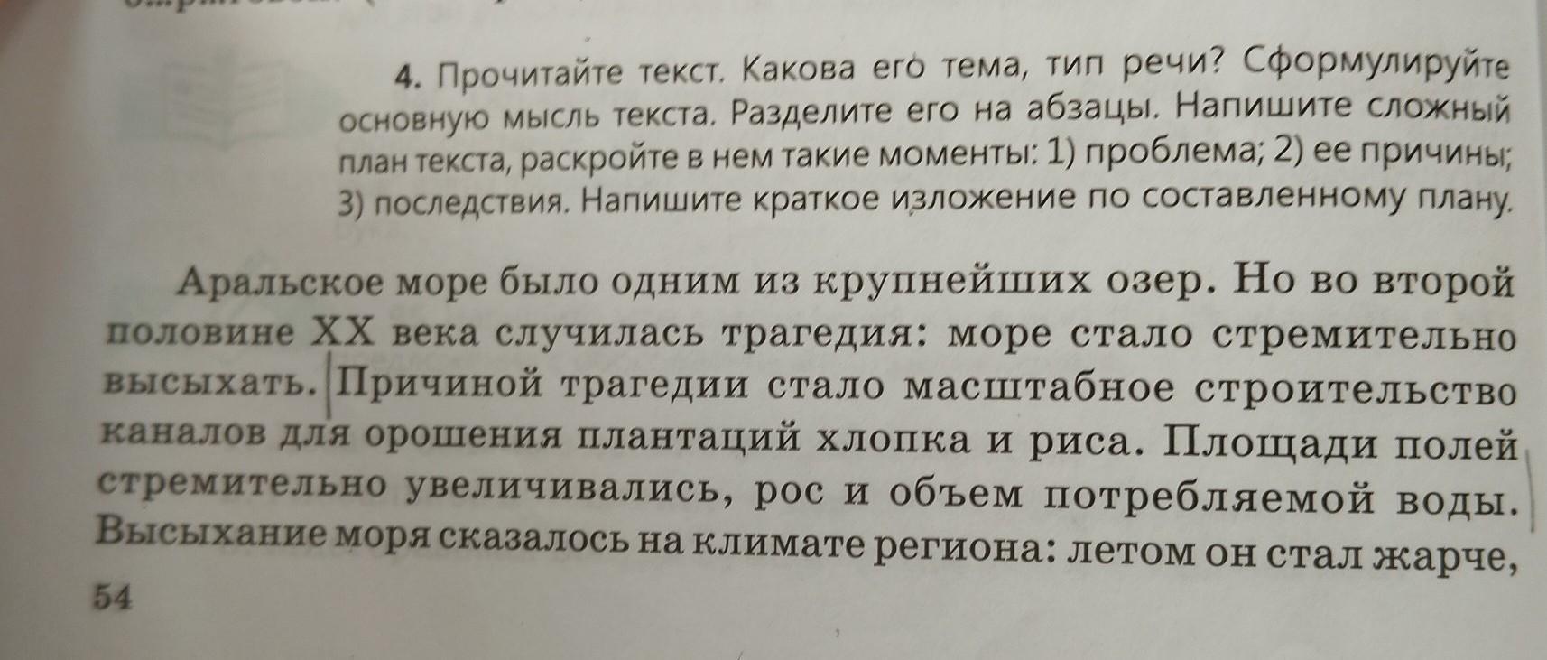Прочитайте текст. Какова его темя, тип речи? Сформулируйте основную мысль текста. Разделите его на абзацы. Напишите сложный план текста, раскройте в нем такие моменты; 1) проблема; 2) ее причины; 3) последствия. Напишите краткое изложение по составленному плану.