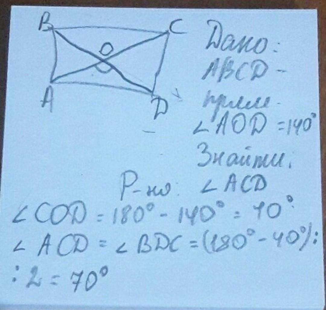 у прямокутнику abcd о точка перетину діагоналей,кут АОD=140⁰.Знайдіть кутODC ОЧЕНЬ СРОЧНО ДАЮ 100 БАЛЛОВ