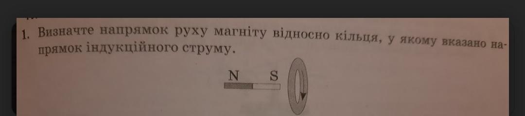Визначте напрямок руху магніту відносно кільця, у якому вказано напрямок індукційного струму.