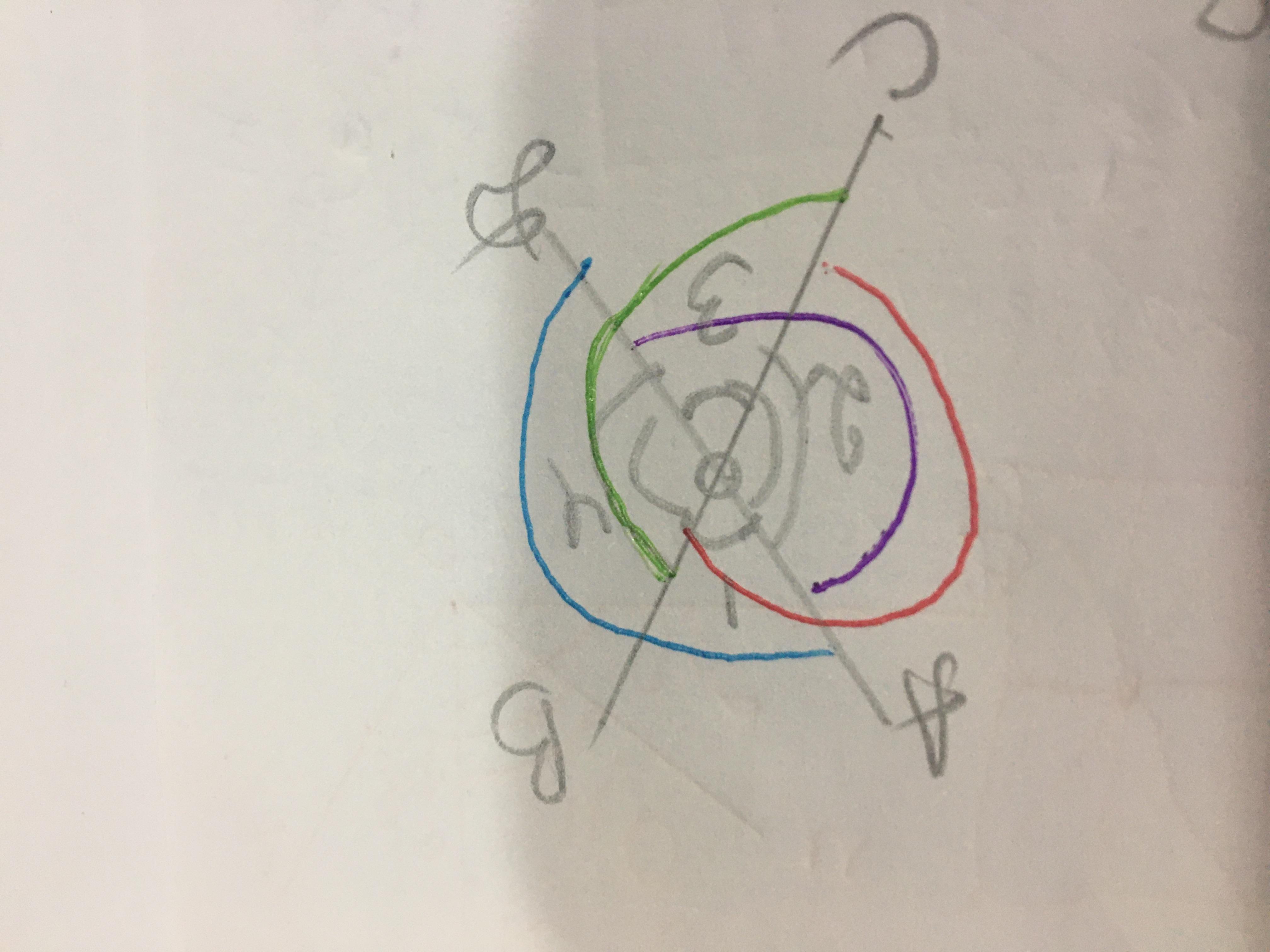 при пересечении двух прямых образуется 4 угла ,две пары вертикальных углов ,которые равны между собой <1=<3,<2=<4, и смежные углы ,их сумма 180 ° <1+<2, то есть если сумма двух углов неравна 180 °, то это сумма двух вертикальных углов