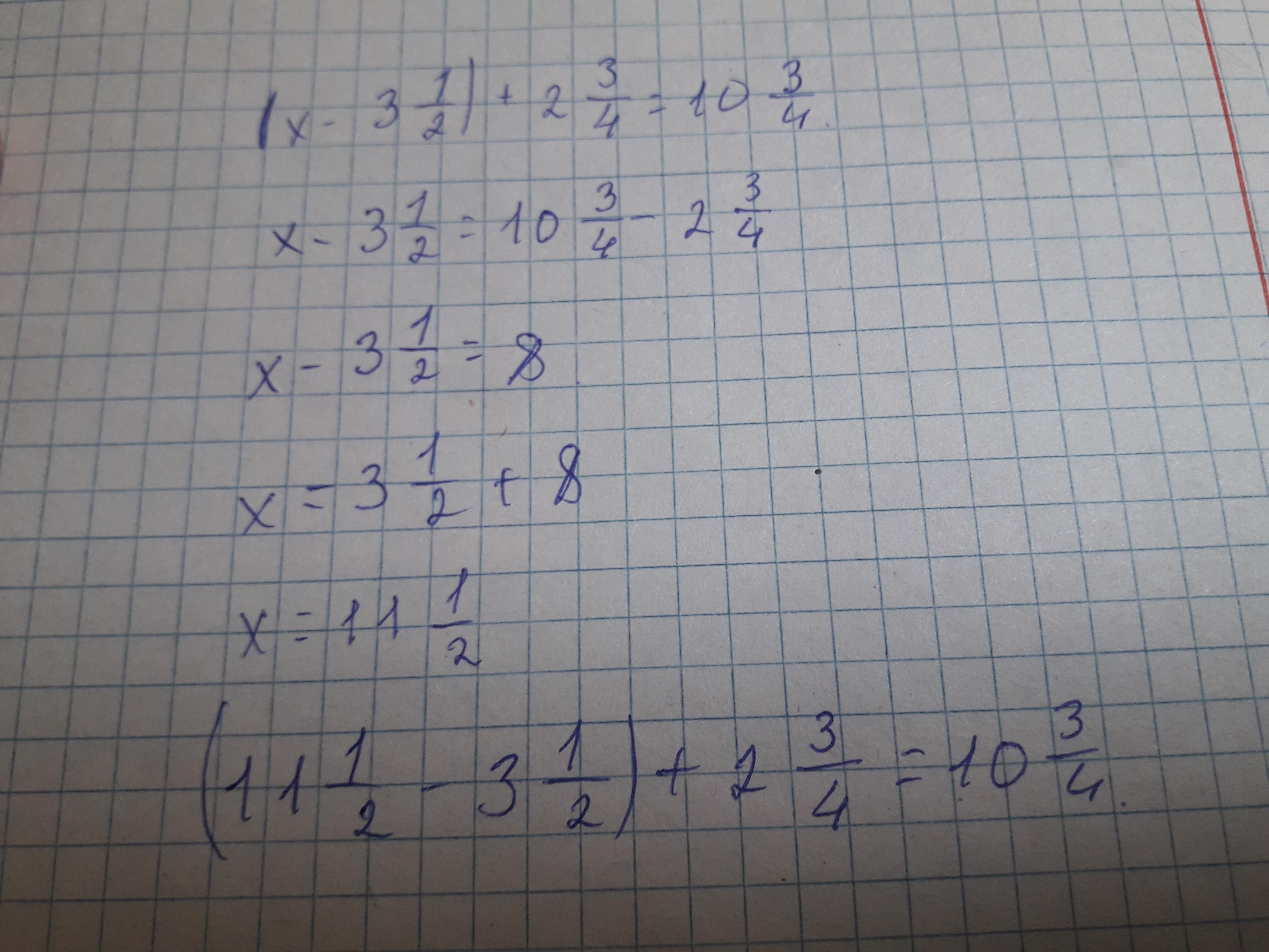 (x - 3 1/2) + 2 3/4 = 10 3/4