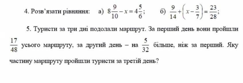 1) 17/48 + 5/32 = 34/96 + 15/96 = 49/96 (часть) - всего маршрута прошли туристы во 2 день