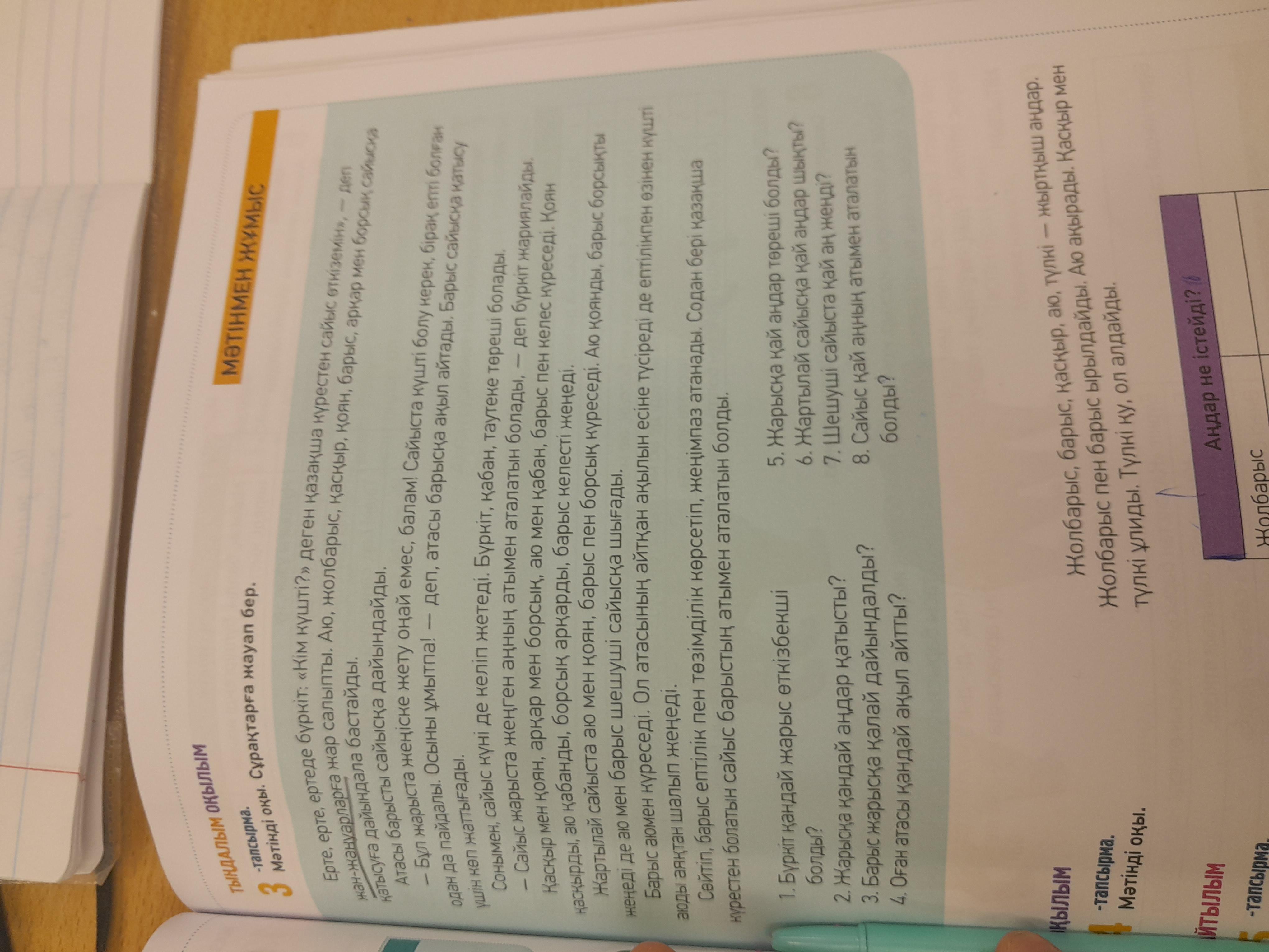 Мәтінді оқы. Сұрақтарға жауап бер 3 тапсырма 63 бет 1. Бүркіт қандай жарыс қткізбекші болды? 2. Жарысқа қандай аңдар қатысты?