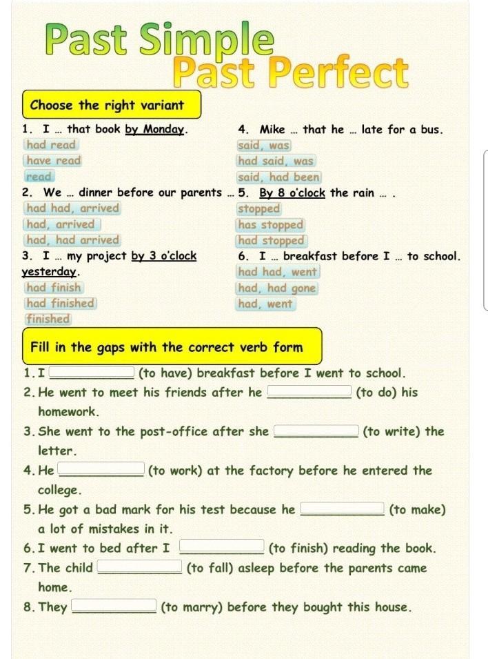 Fill in the gops with the correct verb form