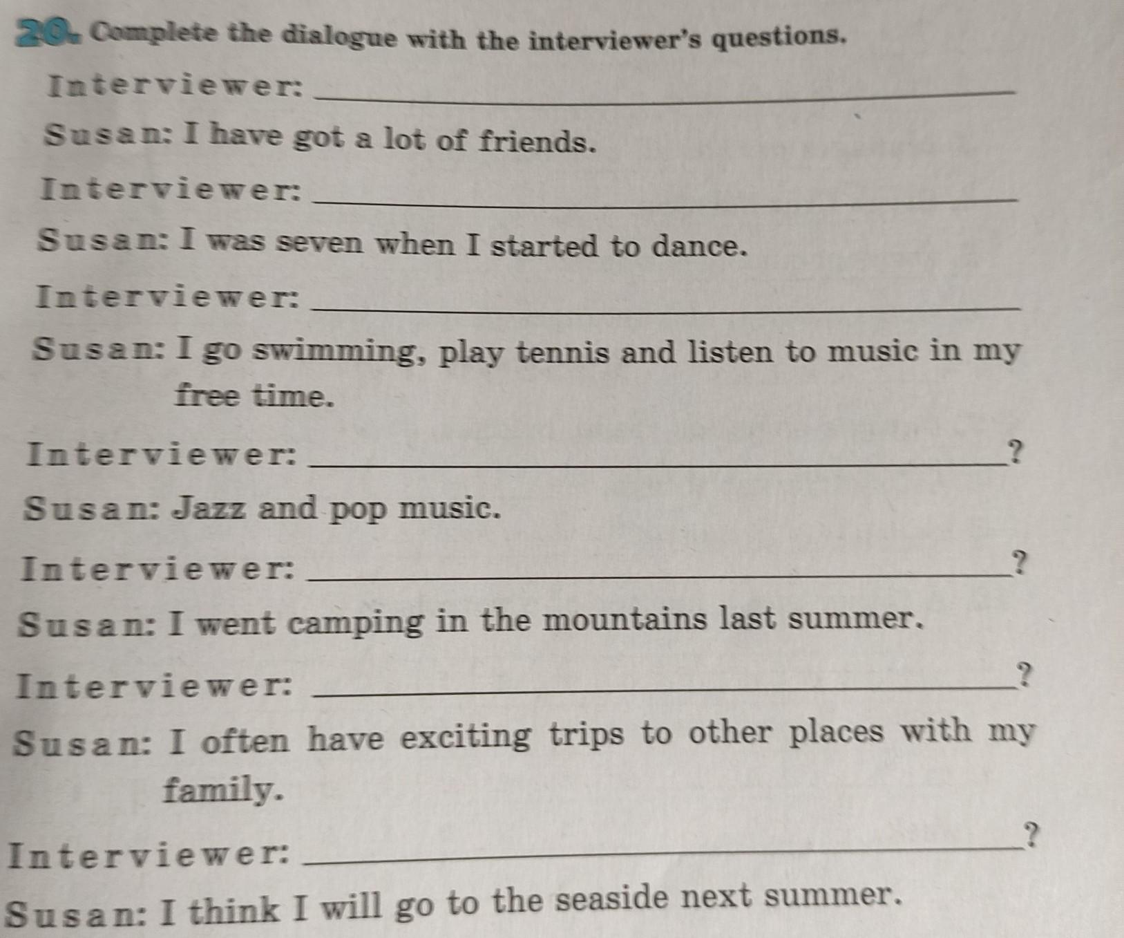 4.where did you go last year? 5.where do you like to go with your family? 6.where do you think you will go next summer?