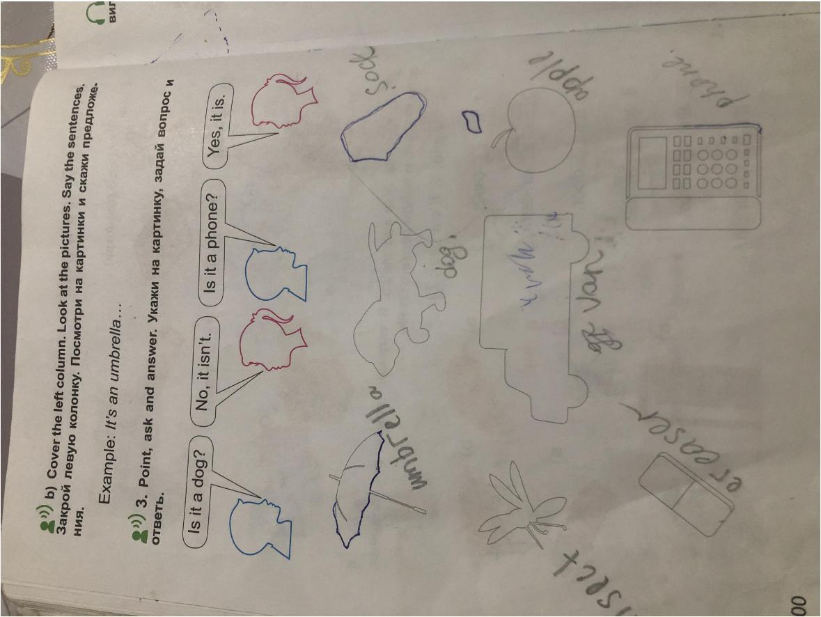 в первом указываете на любую вещь кроме собаки задаёте вопрос