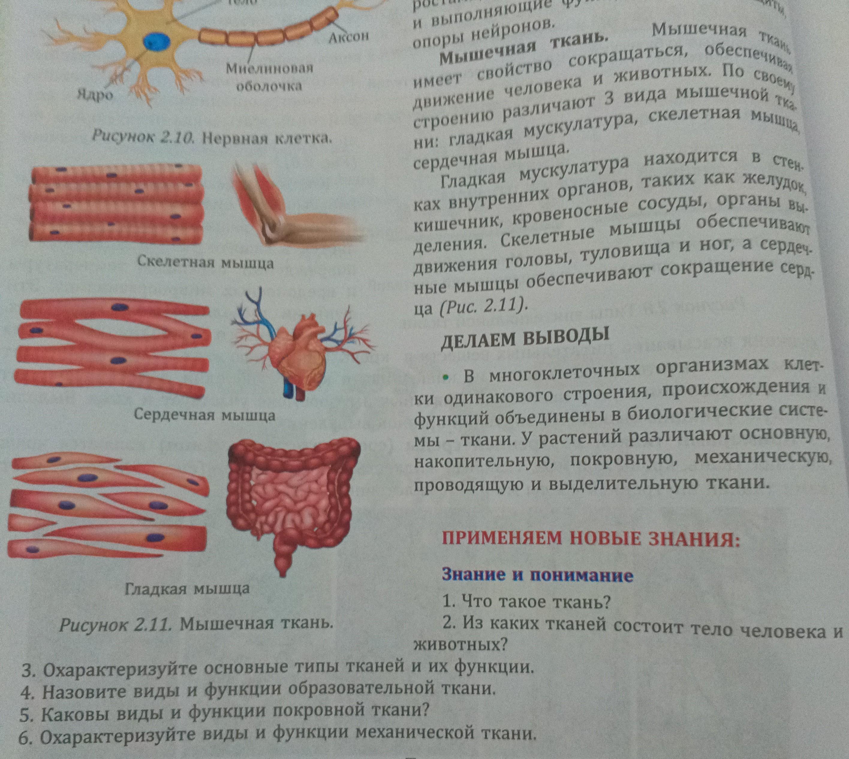 2. В организме человека, как и животных, различают четыре группы тканей — эпителиальную, соединительную, нервную и мышечную.