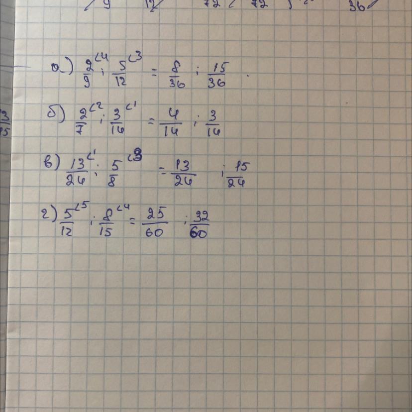 в)13/24 і 5/8; г)5/12 і 8/15.