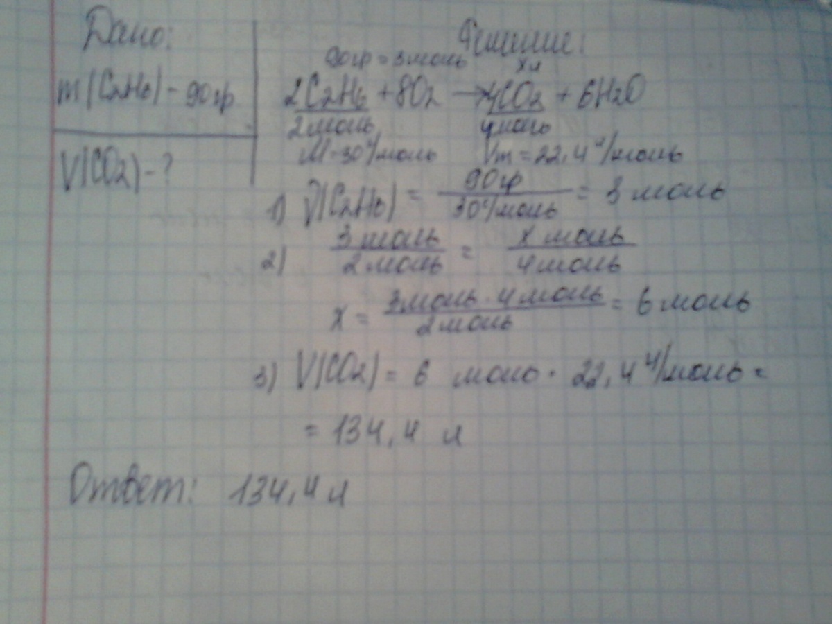 с 60 гр етана получим 89.6 литра углекислого газа , а с 90 гр -134.4 литра