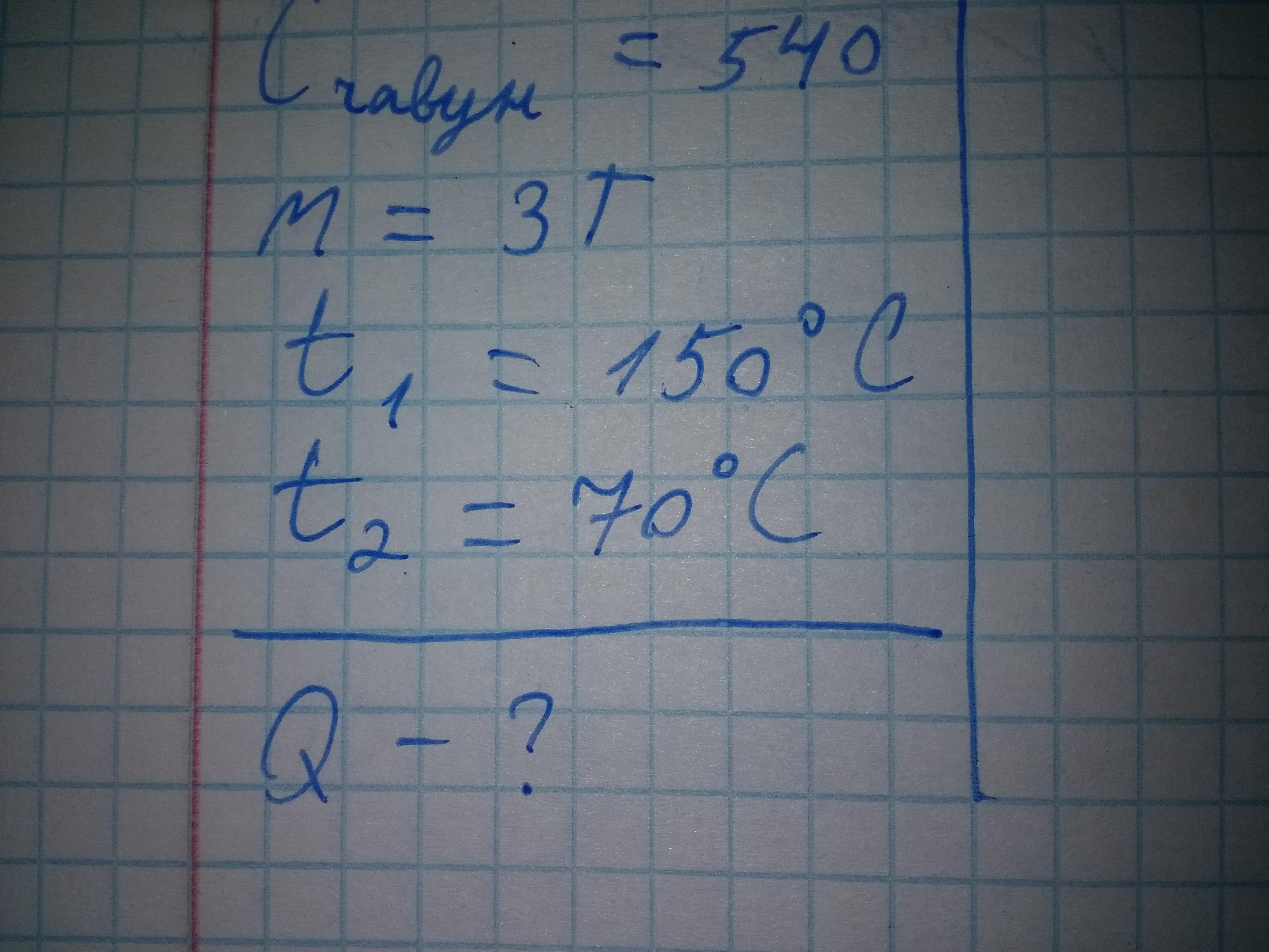 Q = cm∆t = 540 * 3000 * (-80) = 129600000 Дж = 129,6 МДж