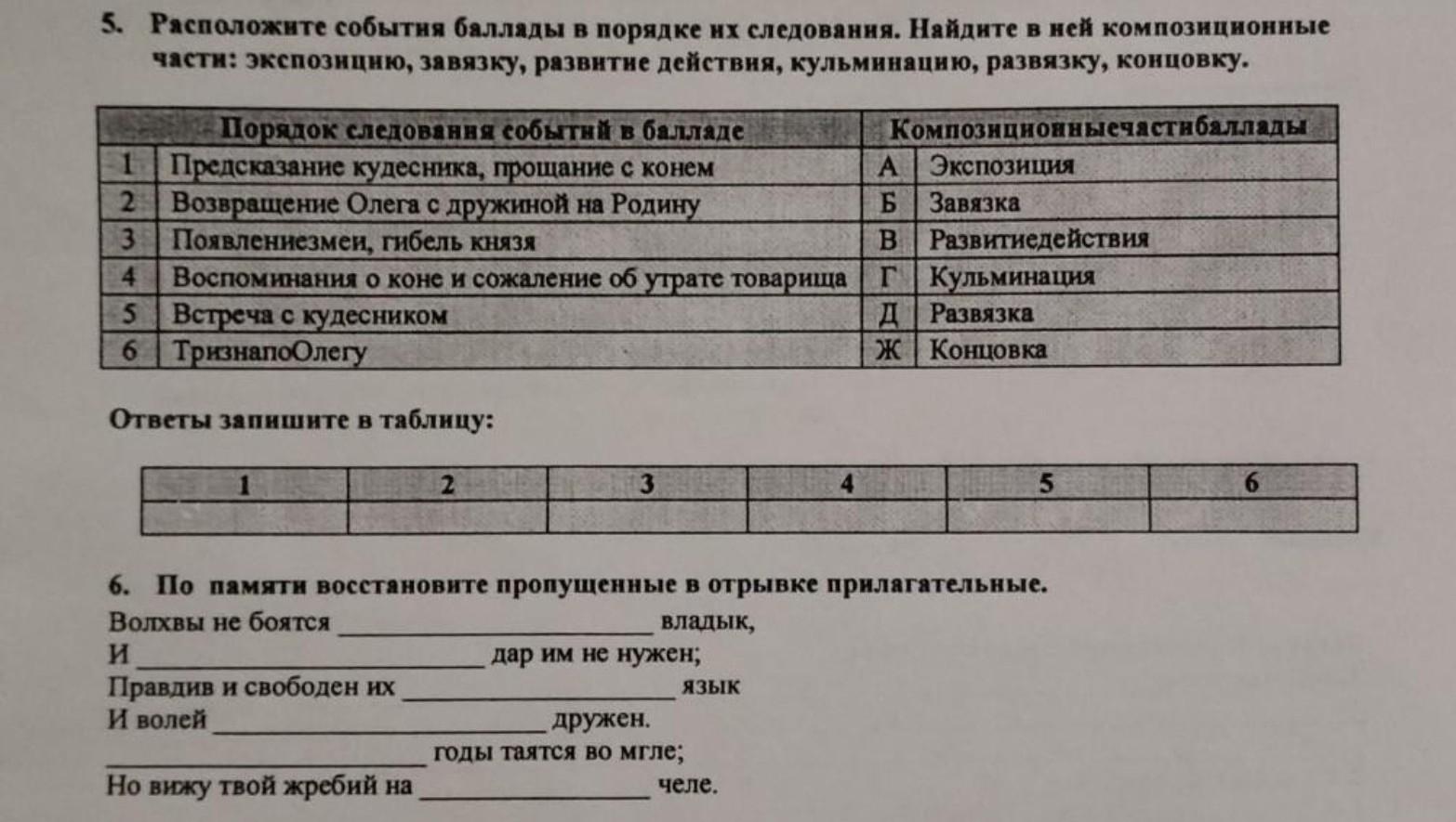 Ответ: Так если я не ошибаюсь, то это вопросы по поводу баллады А.С. Пушкина "Песнь о вещем Олеге".