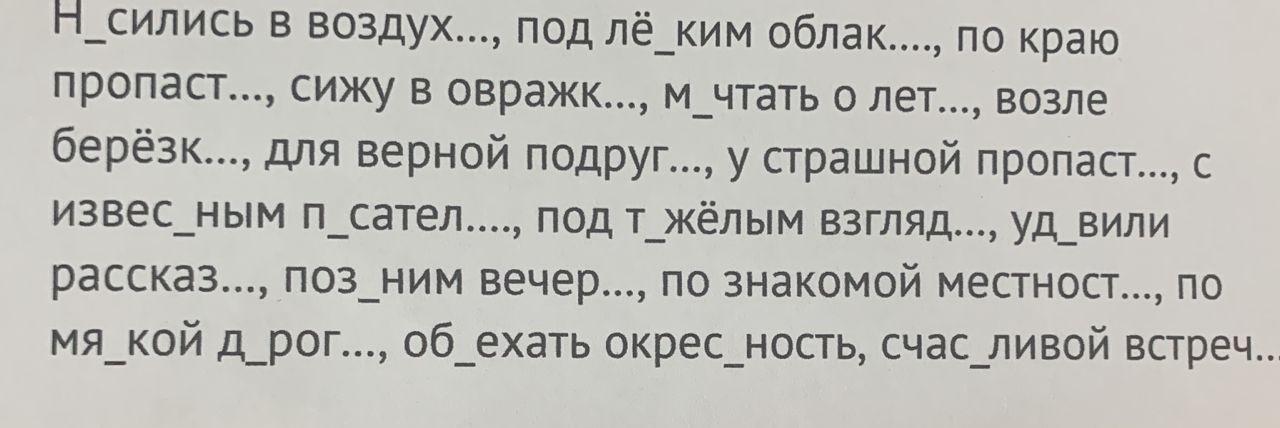 Носились в воздух, под лёгким облаком, по краю пропасти, сижу в овражке, мечтать о лете, возле берёзки, для верной подруги, у страшной пропасти, с известным писателем, по тяжёлым взглядом, удивили рассказом, поздним вечером, по знакомой местности, по мягкой дороги, объехать окрестность, счастливой встречи.