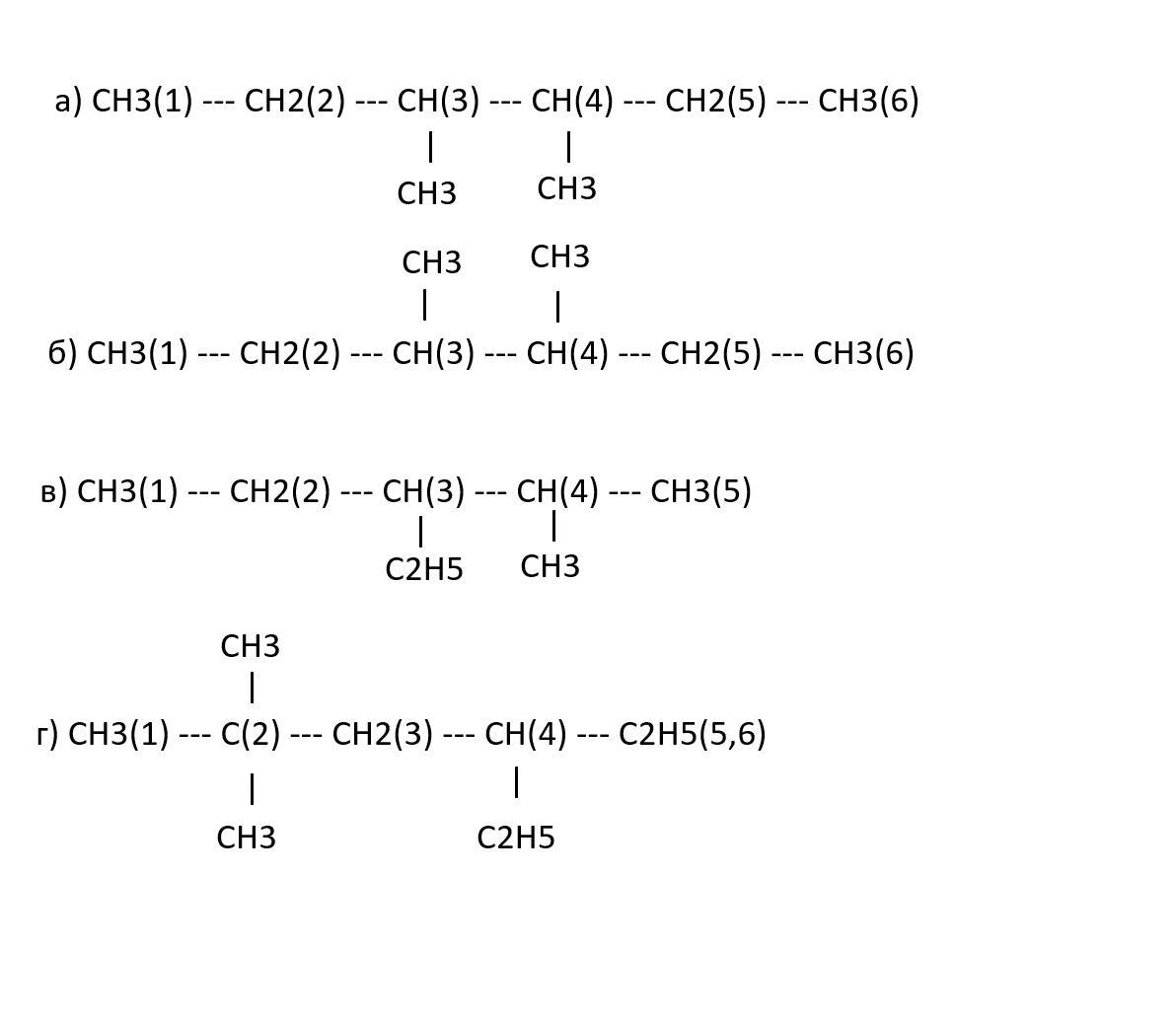 в а я просто повернул на 90 градусов боковые группы CH3, а в б я разложил C2H5 как CH3 --- CH2