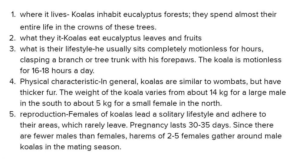 Copy the table. Then write the information in the box in the order it appears in the text. interesting facts about the animal where it lives what it eats what it looks like