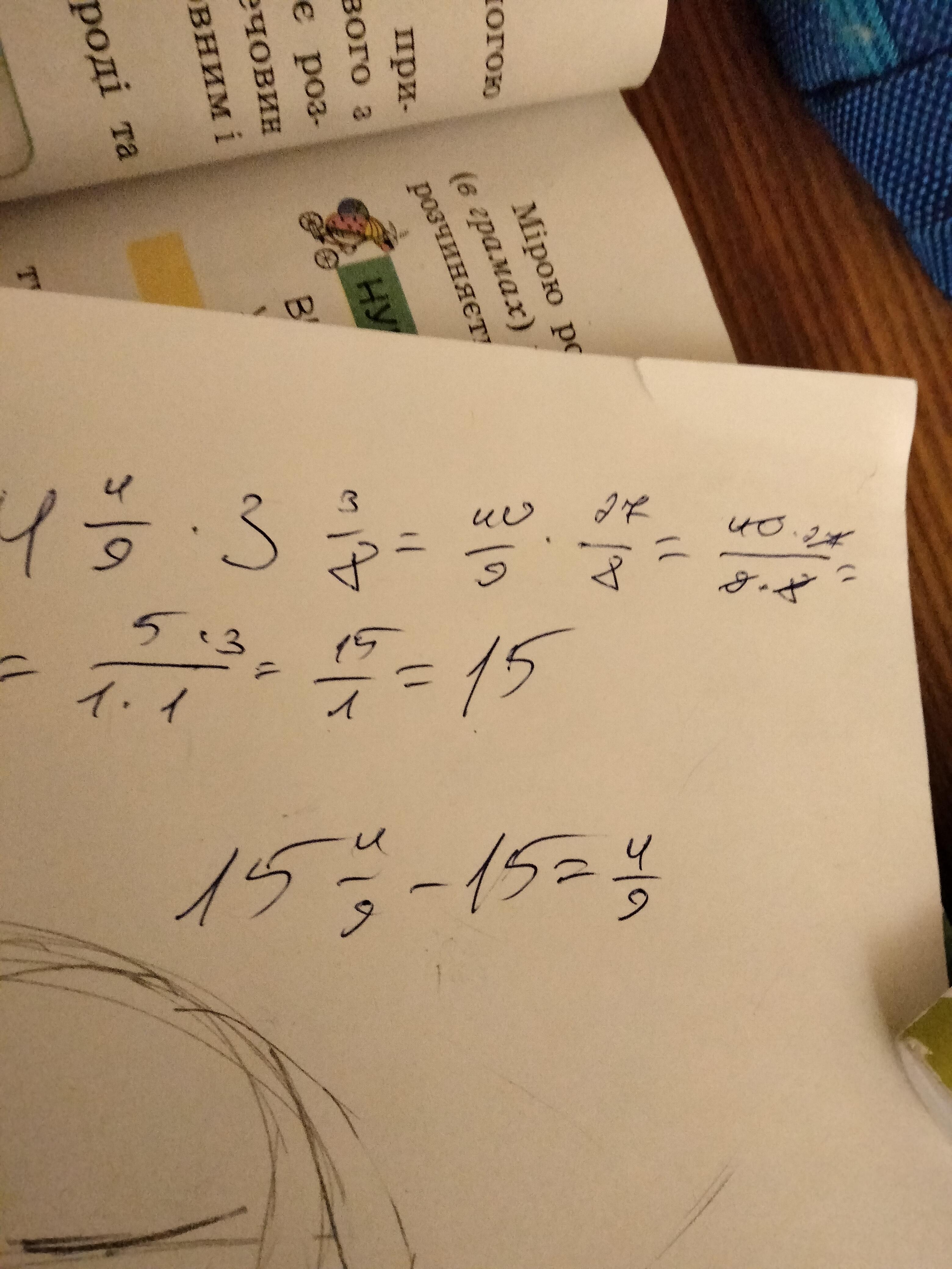 Итак, ответ на выражение 15 4/9 - 4 4/9 * 3 3/8 равен 0.
