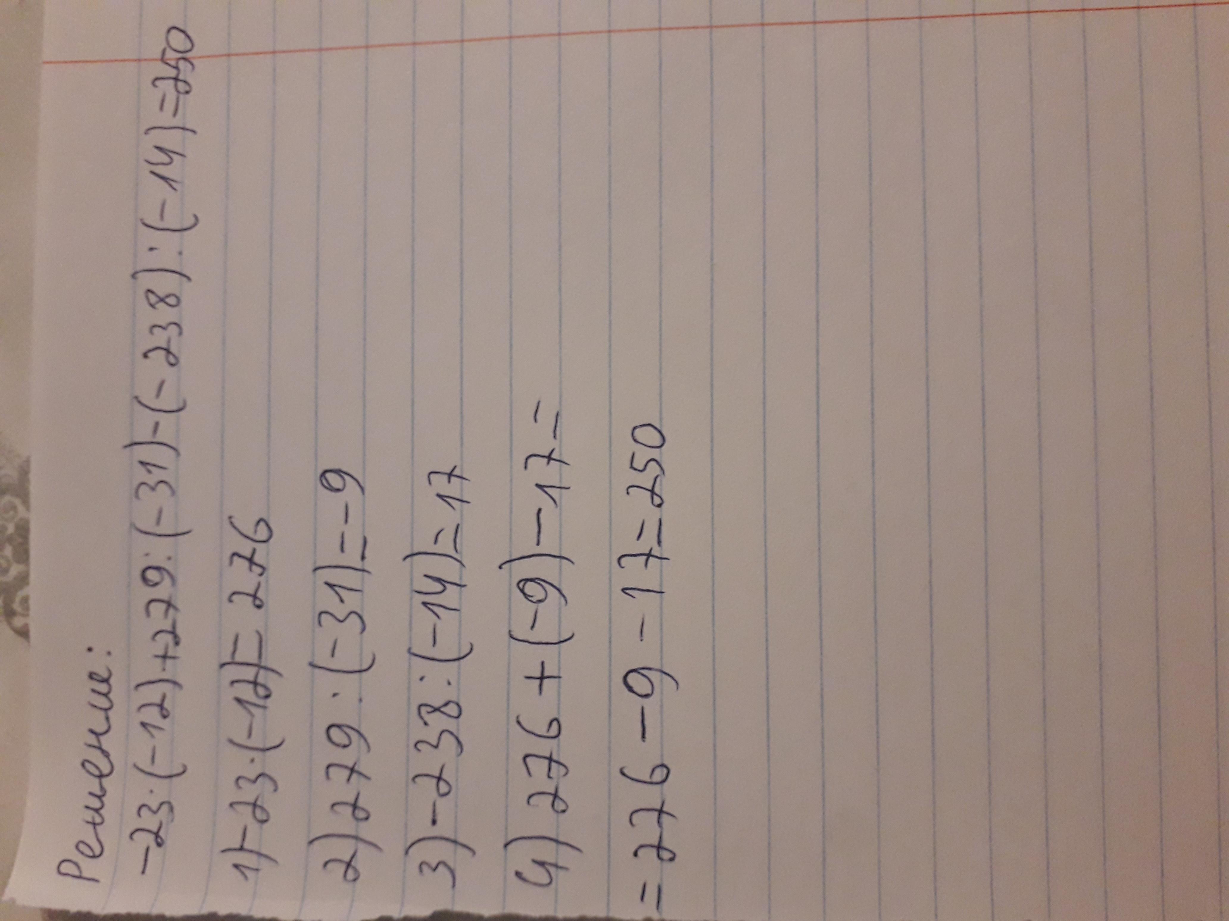 -23×(-12)+279÷(-31)-(-238)÷(-14)