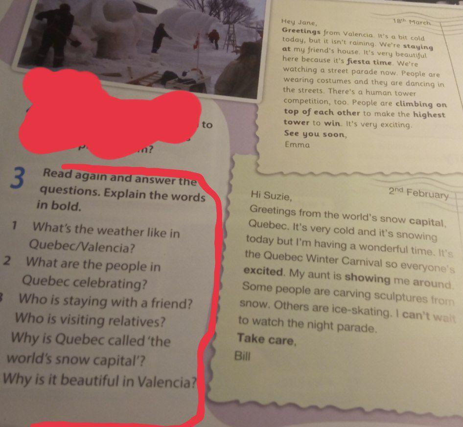 1. It's cold and snowing in Quebec. It's cold in Valencia.