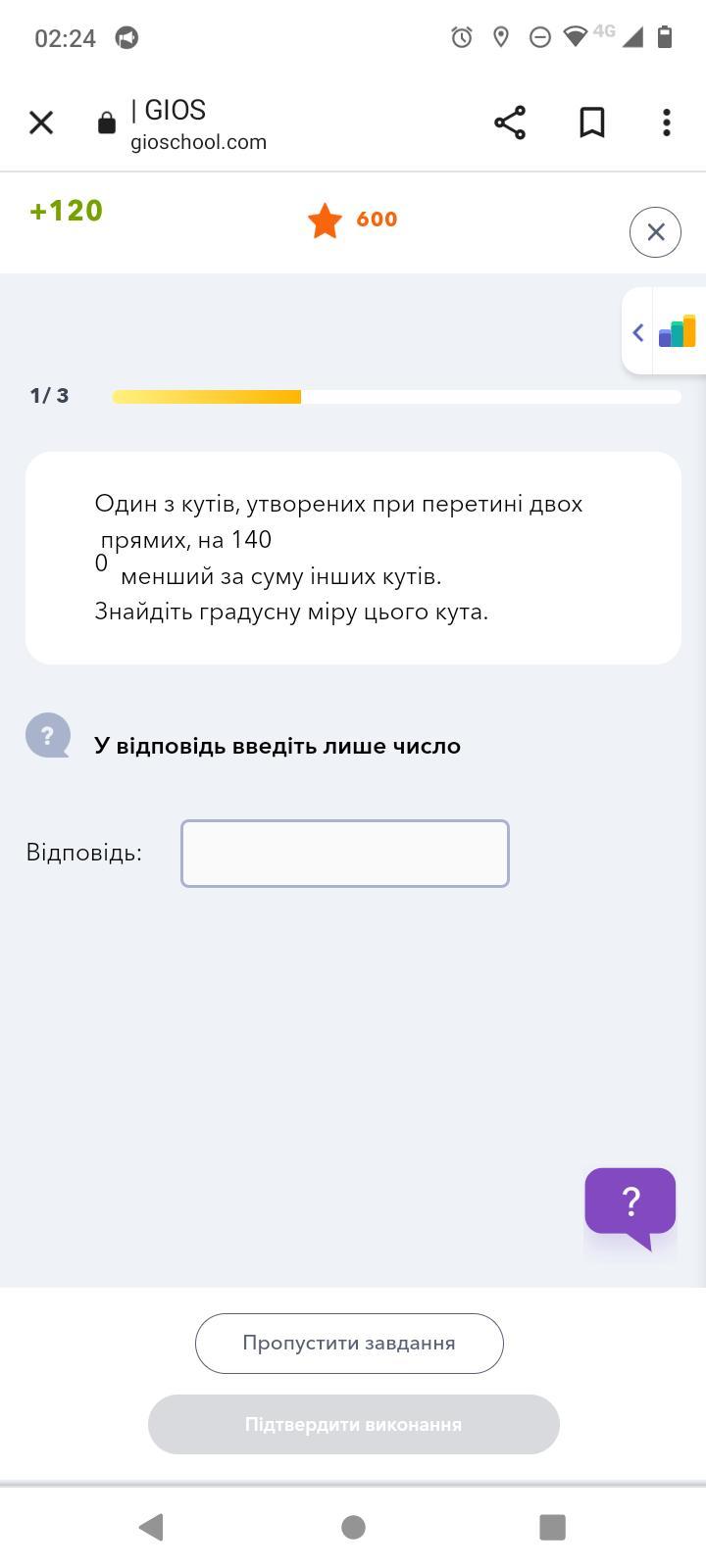 Отже, градусна міра цього кута дорівнює 40 градусів.