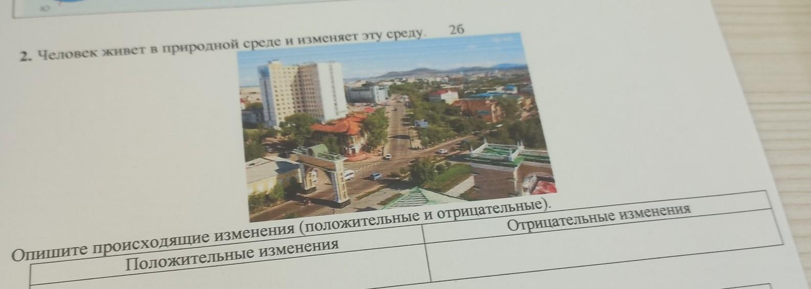 2. Человек живет в природной среде и изменяет эту среду 26 Опишите происходящие изменения (положительные и отрицател Положительные изменения