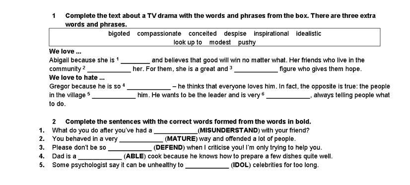 Gregor because he is so **conceited** - he thinks that everyone loves him. In fact, the opposite is true: the people in the village **despise** him. He wants to be the leader and is very **pushy**, always telling people what to do.