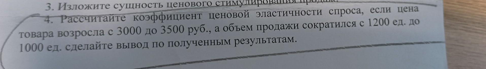 Маркетинг) Рассчитайте коэффициент ценовой эластичности спроса, если цена товара возросла с 3000 до 3500 руб., а объем продажи сократился с 1200 ед. до 1000 ед. сделайте вывод по полученным результатам.