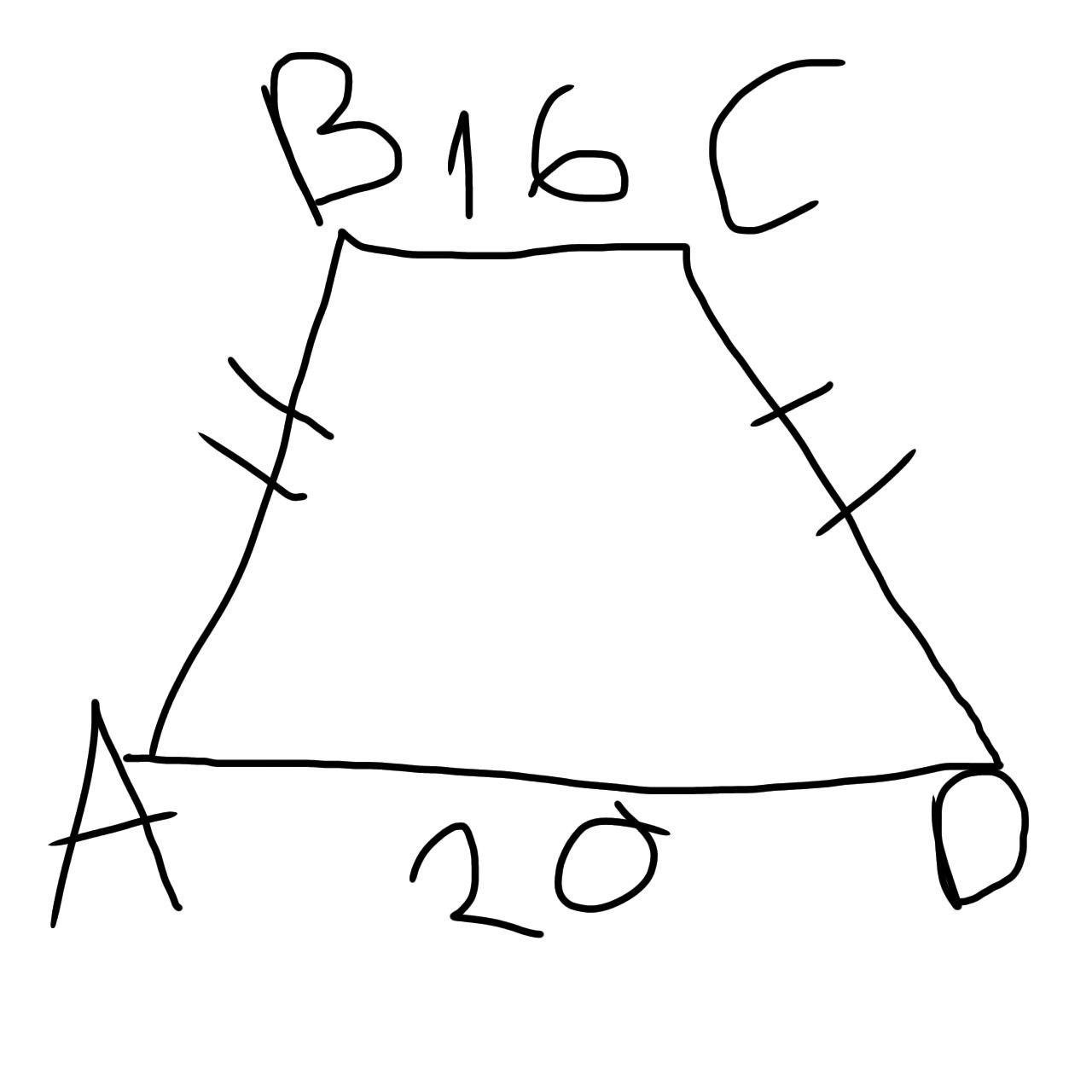 Основи рівнобічної трапеції дорівнюють 16 см та 20 см, а периметр 56см. Знайдіть бичну сторону трапеції