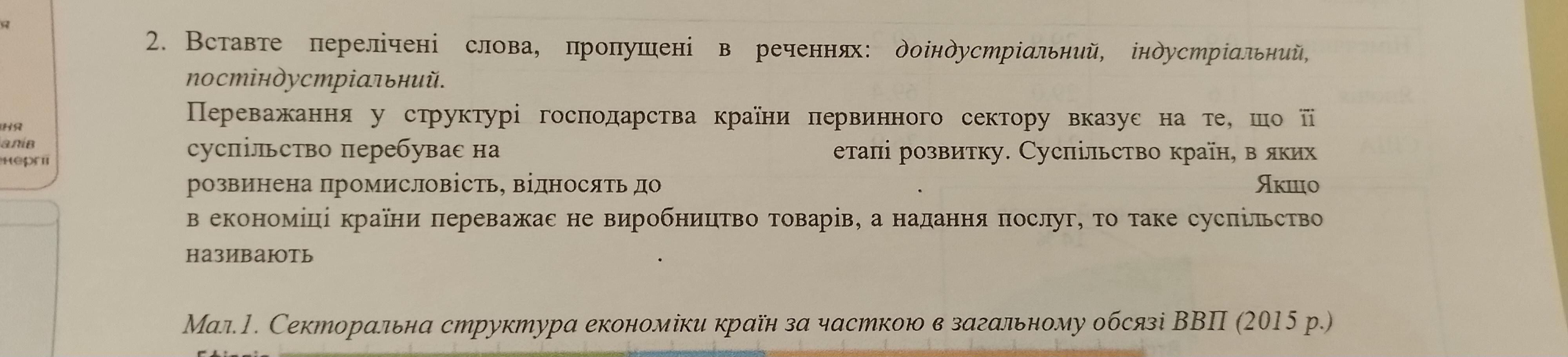 вставте перелічені слова, пропущені в реченнях: доіндустріальний, індустріальний, постіндустріальний