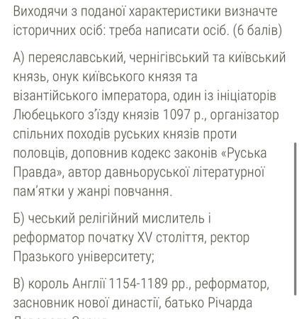 Виходячи з поданої характеристики визначте історичних осіб: треба написати осіб. (6 балів)