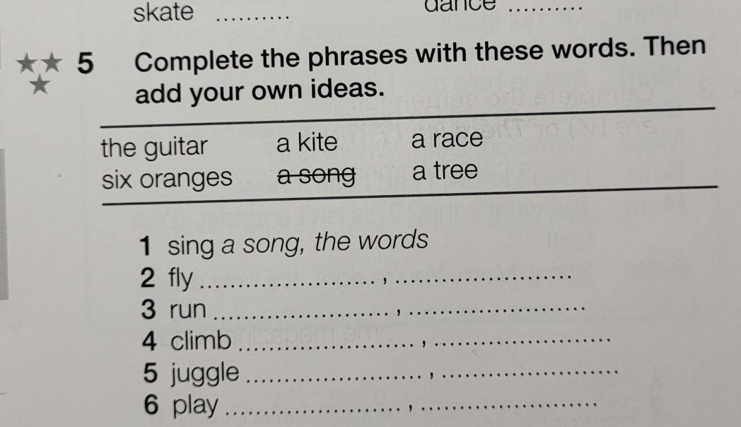 2) fly a kite, to Italy (запускать воздушного змея, лететь в Италию)