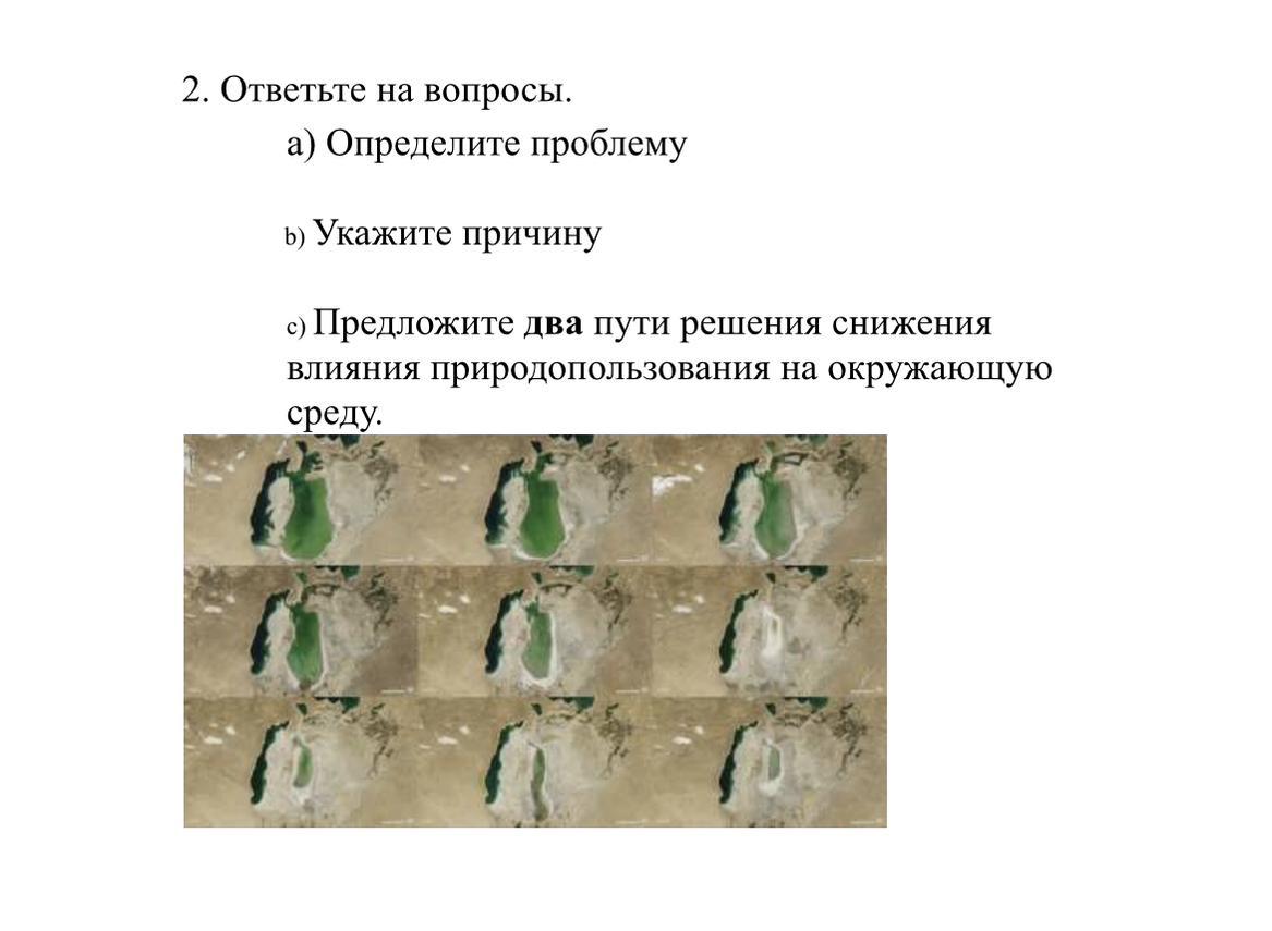 - а) Определите проблему.Обмеление Аральского моря - озера.