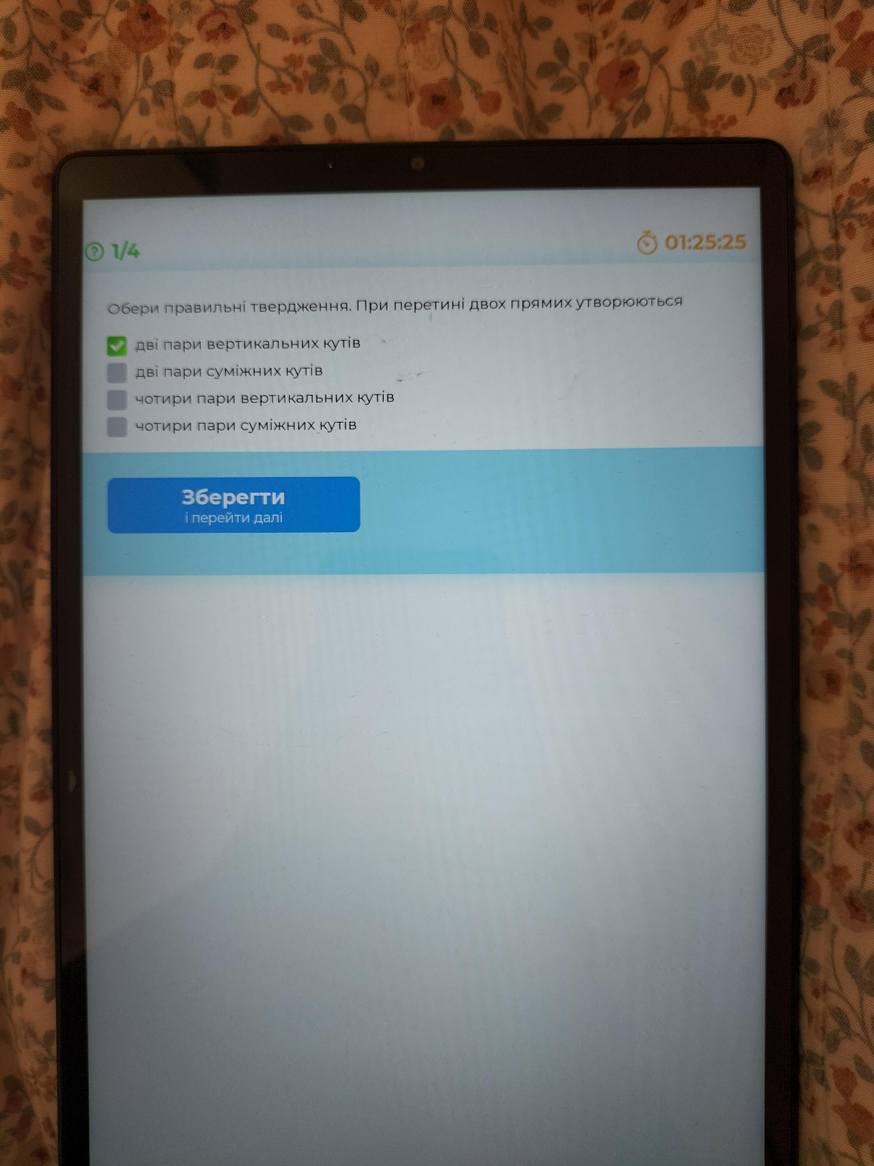 - Дві пари вертикальних кутів (два кути, які лежать з протилежних боків перетину і мають однакову міру).