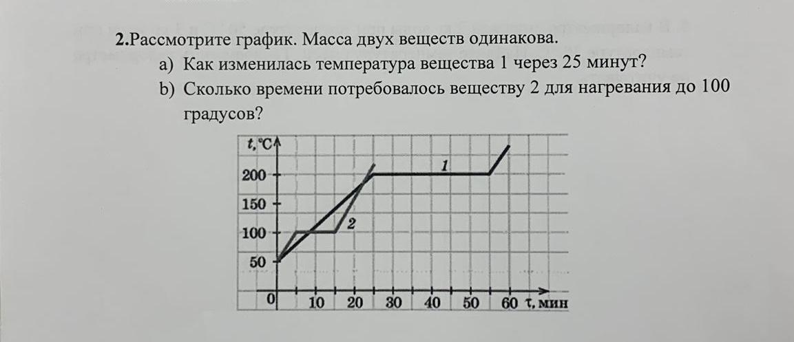 b) Сколько времени потребовалось веществу 2 для нагревания до 100 градусов?