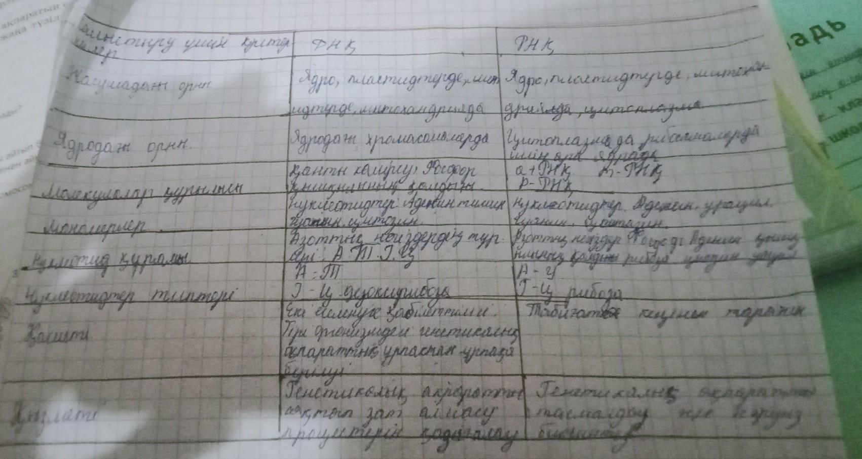 ДНК е қызметтерін салыстырыңдар. Кестені ДНҚ және РНҚ құрылысын, қасиеттерін және даптерге сызып толтырыңдар. помогите, көмек, help