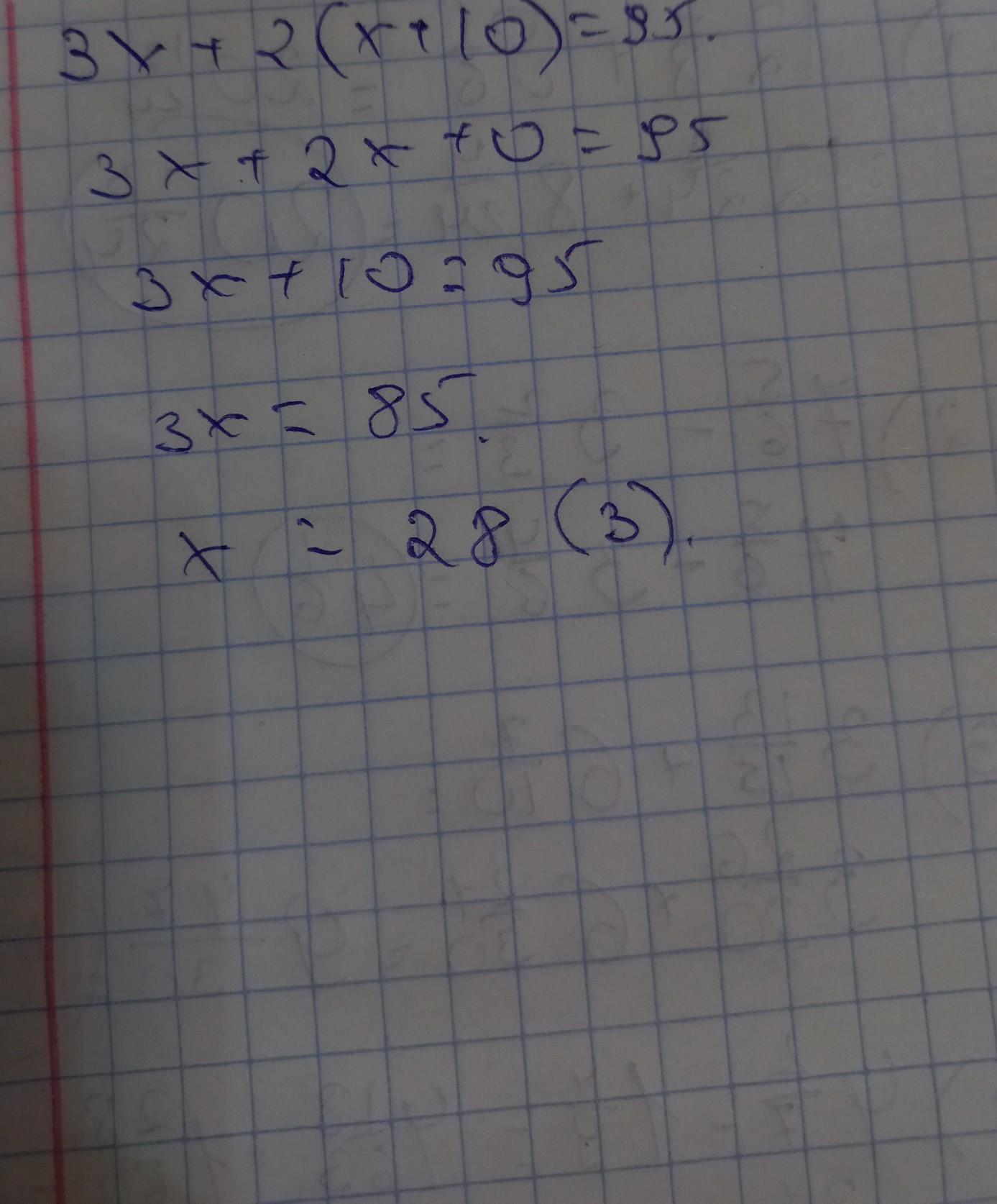 3х+2(х+10)=95 решите это без раскрывания скобок или с раскрыванием скобок раскрываниям правильным