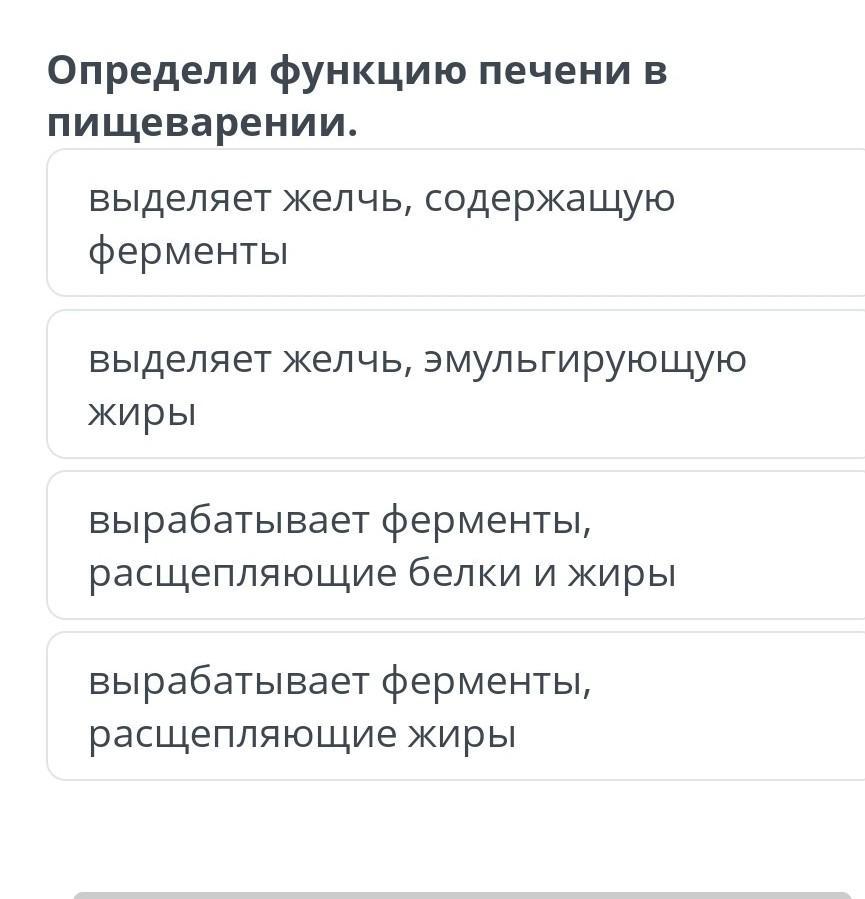 ферменты выделяет желчь, эмульгирующую жиры вырабатывает ферменты, расщепляющие белки и жиры вырабатывает ферменты, расщепляющие жиры(срочно)