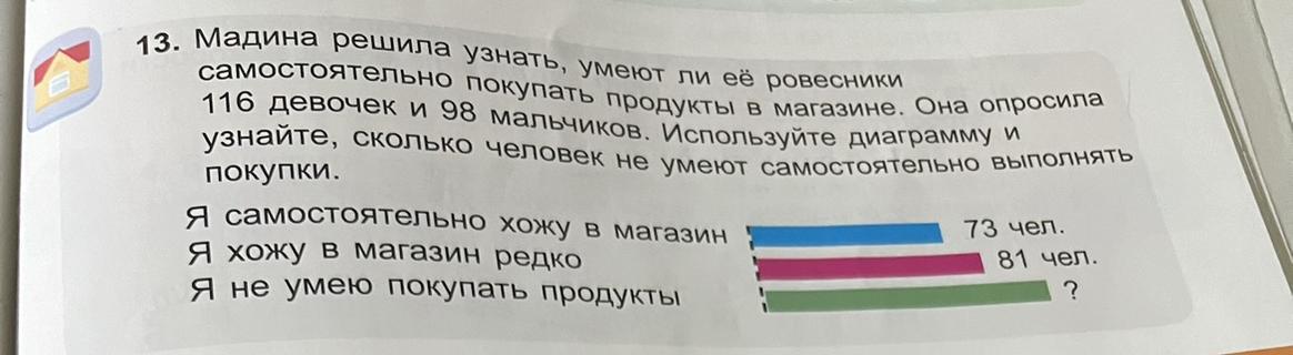 2)214-(73+81)=60(чел.)не умеющие покупать продукты