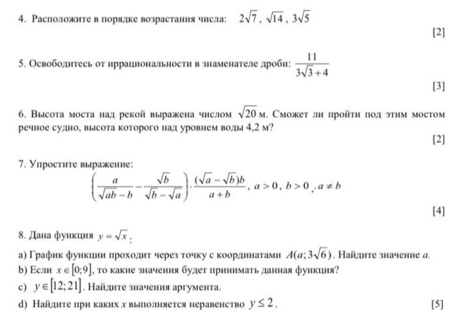 Виходячи з чисел, вони розташовані так: 3V5 = 15 (оскільки V5 = √5), V14 = √14, 207.