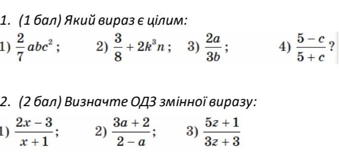 1.Який вираз є цілим:
