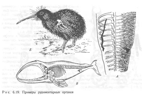 Рассмотрите рисунки, на которых представлены птица киви, скелет питона, скелет кита. Найдите на этих рисунках рудиментарные органы. Подпишите их.