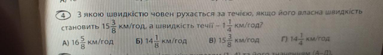 Пошаговое объяснение: Узнаем их общий знаменник (8) получается скорость течии будет 1 целая 2/8 а потом добавляем.