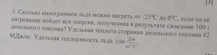 Сколько килограммов льда можно нагреть от -25°С до 0°С, если на ее нагревание пойдет вся энергия, полученная в результате сжигание 100 г дизельного топлива? Удельная теплота сгорания дизельного топлива 42