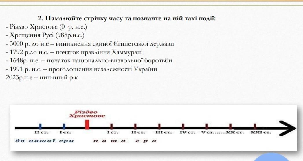 2. Намалюйте стрічку часу та позначте на ній такі події: