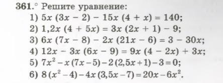 5) 7x^2 - x(7x - 5) - 2(2.5x + 1) - 3 = 0