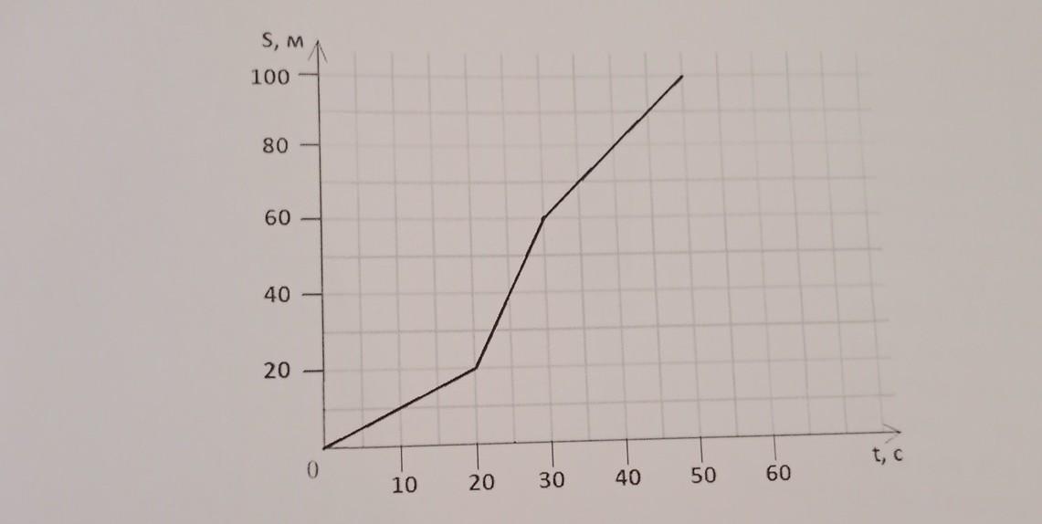 Определите скорость тела за промежуток времени 0-20;20-30;30-50 секунд.
