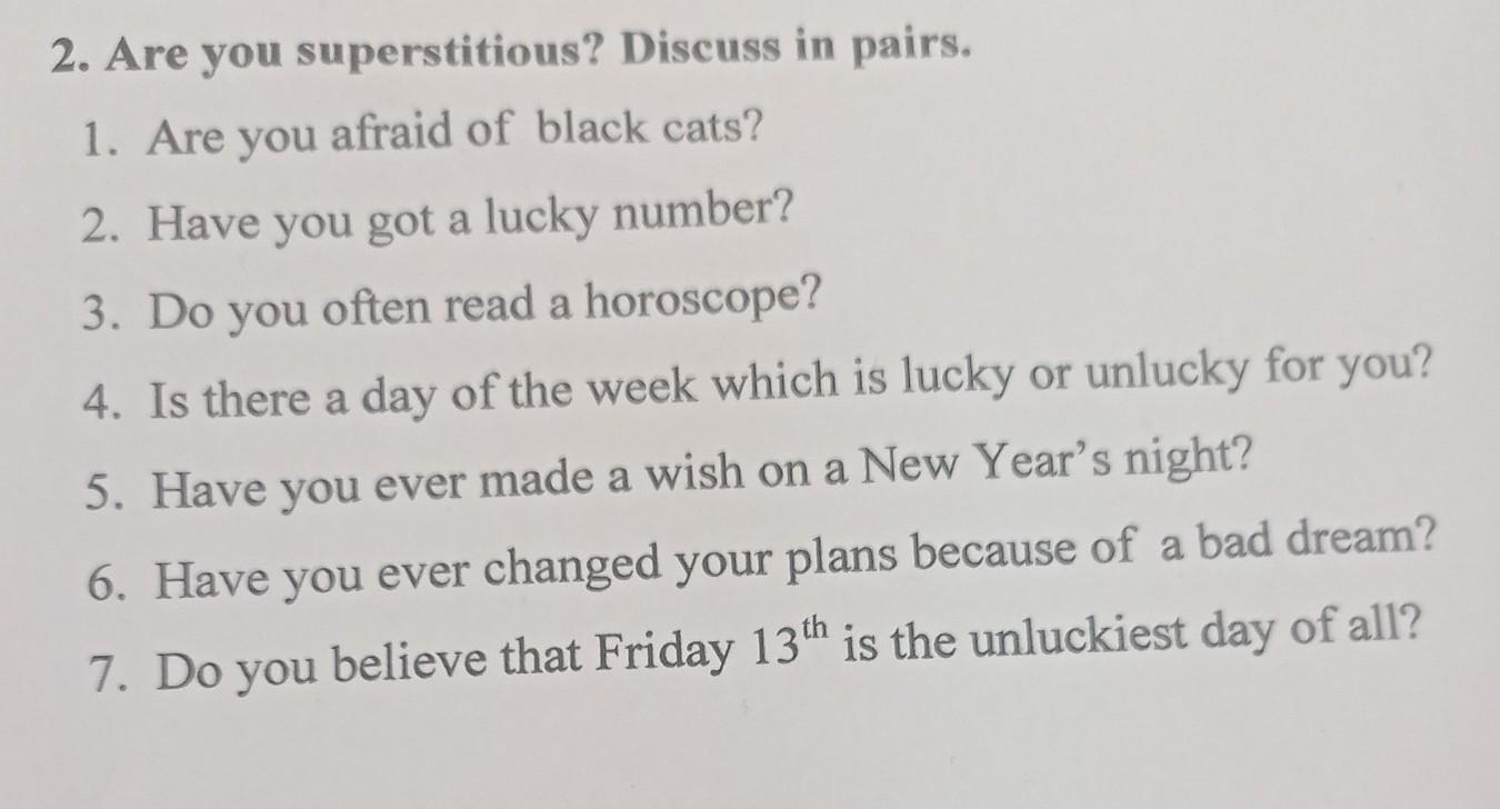 Person B: I am a little superstitious, so I might feel a bit uneasy if a black cat crosses my path, but I don't believe in any serious bad luck associated with it.