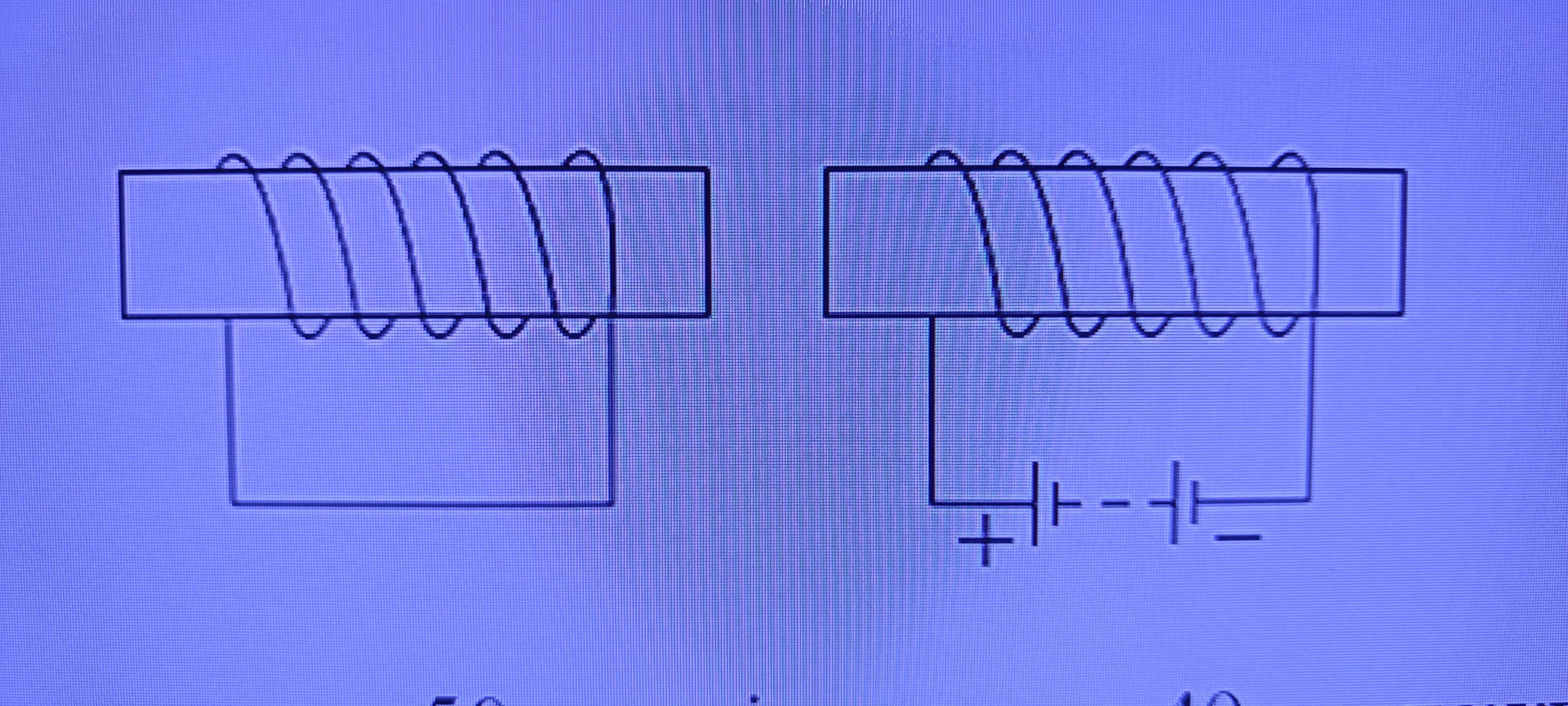 Визнач напрямок індукційного струму в котушці, розташованій ліворуч, якщо її