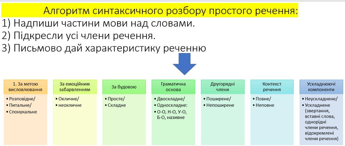 Ця схема допомагає виділити головні та додаткові частини речення для кращого розуміння його структури.