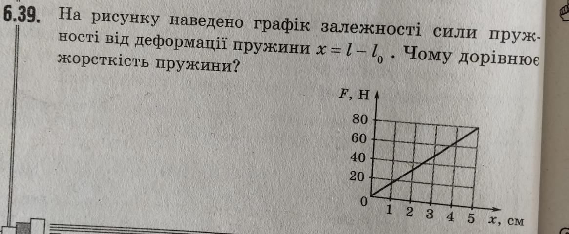 2. На рисунку наведено графік залежності сили пружності від деформації пружини х = l-l0 Чому дорівнює жорсткість пружини?
